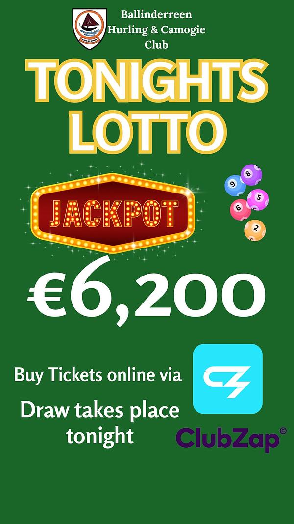 To be in with a chance to win, pick your Numbers and enter via this link https://ballinderreengaa.clubzap.com/draws