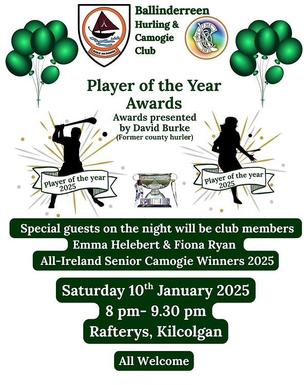 Special guests will include club members Emma Helebert and Fiona Ryan, both All-Ireland Senior Camogie winners in 2025.